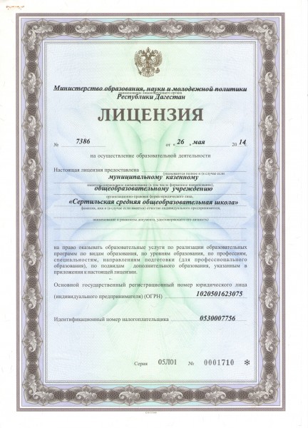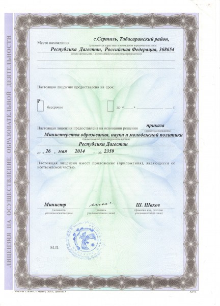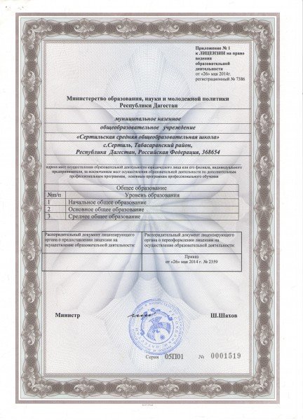 Адрес местонахождения образовательной организации* Республика Дагестан, Табасаранский район с.Сертиль ул.Школьная №1, 368654